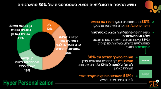 לפי סקר 7I's 2025, בקרב 40 חברות משתתפות המפגש, 50% מהארגונים בישראל כבר כוללים את נושא ההתאמה האישית באסטרטגיה ורק מחצית מהם הקצו לכך תקציב ופחות מזה התאימו את יעדי הארגון.